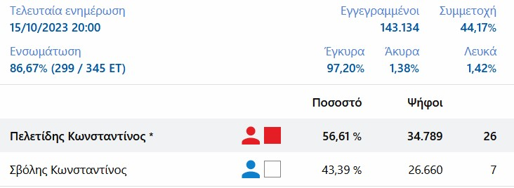Καθαρή νίκη του υποψηφίου Δημάρχου του ΚΚΕ, Κώστα Πελετίδη δείχνουν τα αποτελέσματα των εκλογών στο Δήμο της Πάτρας.