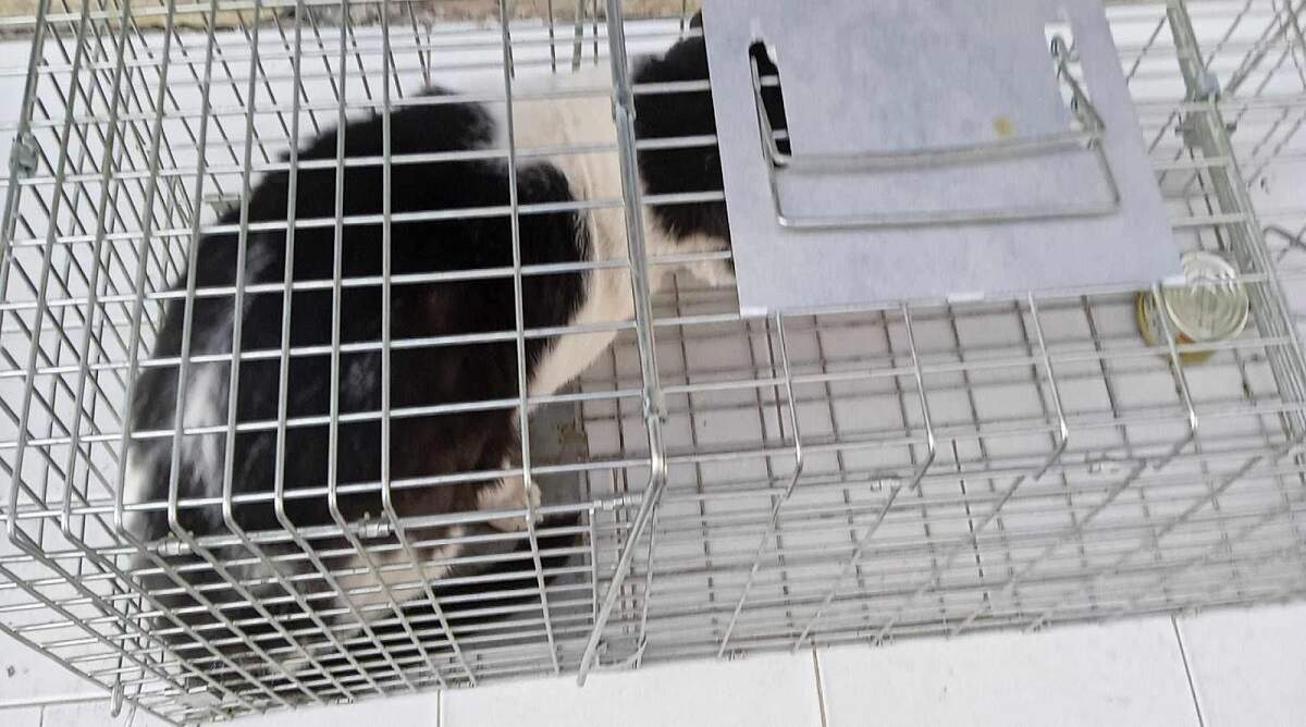 Εικόνα 2: το ένα από τα δύο ζώα που διασώθηκαν από το εσωτερικό του κτιρίου του Ευαγγελισμού, μετά την επιχείρηση των εθελοντών των φιλοζωικών σωματείων που τοποθέτησαν ειδικούς μηχανισμούς παγίδευσης.
