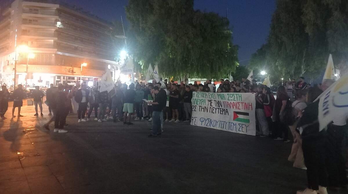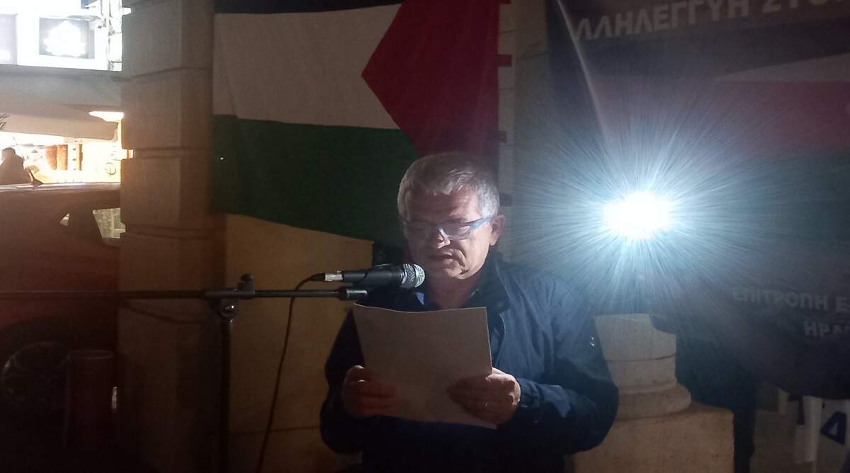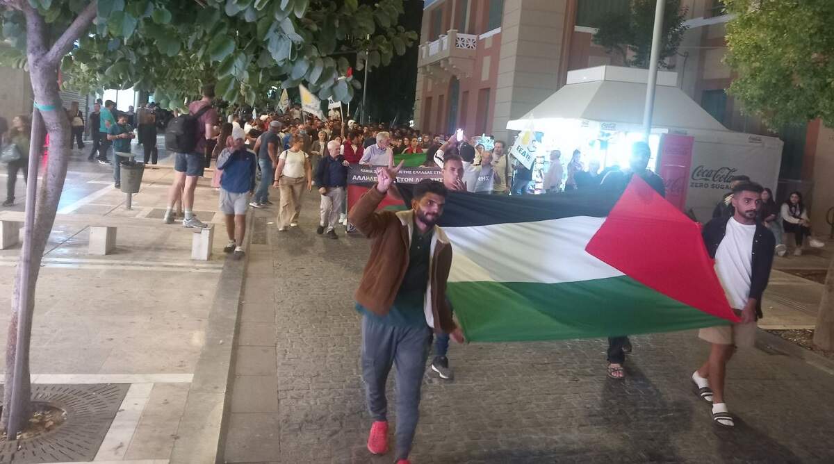 Πλήθος κόσμου συγκεντρώθηκε στην πλ. Ελευθερίας του Ηρακλείου την Τρίτη 17/10/23 για να εκδηλώσει την αλληλεγγύη του προς τον Παλαιστινιακό λαό. Την εκδήλωση οργάνωσε η Επιτροπή Ειρήνης Ηρακλείου και συμμετείχαν το Συνδικάτο Οικοδόμων, η Ένωση Ιδιωτικών Υπαλλήλων, το Συνδικάτο Εργατοϋπαλλήλων Γάλακτος Τροφίμων Ποτών, η Ομάδα Γυναικών Ηρακλείου (μέλος της ΟΓΕ), ο Σύνδεσμος Κοινωνικών Λειτουργών Ελλάδας ΝΠΔΔ- Περιφερειακό Τμήμα Κρήτης, οι φοιτητικοί σύλλογοι των Τμημάτων Φυσικής, Επιστήμης & Τεχνολογίας Υλικών και Εφαρμοσμένων Μαθηματικών του Παν. Κρήτης καθώς και της Σχολής Επιστημών Υγείας του ΕΛΜΕΠΑ. Πολυάριθμη, επίσης, ήταν και η συμμετοχή Παλαιστινίων και Αράβων εργαζομένων.