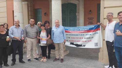Στη συγκέντρωση Δανειοληπτών με ρήτρα Ελβετικού Φράγκου που πραγματοποιήθηκε το Σάββατο 4 Νοεμβρίου στην Πλατεία Ελευθερίας Ηρακλείου, παραβρέθηκε ο Μανώλης Συντυχάκης, βουλευτής Ηρακλείου του ΚΚΕ. Στη συζήτηση αναφέρθηκε ότι το 1 στα 3 στεγαστικά με ρήτρα Ελβετικού Φράγκου είναι μη εξυπηρετούμενα και ότι βρίσκονται στον κίνδυνο άμεσων πλειστηριασμών των ακινήτων πρώτης κατοικίας 70.000 δανειολήπτες, οι οποίοι μαζί με τους εγγυητές,…