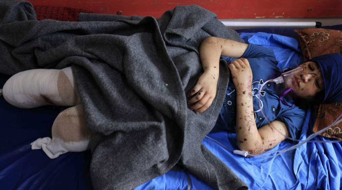 Στη μονάδα εγκαυμάτων, η Λάμα αλ Αγά, 14 ετών, και η αδελφή της, η Σάρα, 15 ετών, που νοσηλεύονται έπειτα από βομβαρδισμό την 12η Οκτωβρίου, βρίσκονται σε διπλανά κρεβάτια. Η μητέρα τους, που δυσκολεύεται να συγκρατήσει τα δάκρυά της, είναι καθισμένη ανάμεσά τους.