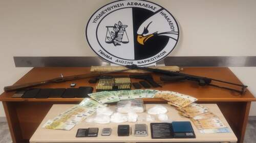 Συνελήφθησαν στο Ηράκλειο 2 ημεδαποί για παραβάσεις της Νομοθεσίας περί ναρκωτικών ουσιών και όπλων. Κατασχέθηκαν ένα κιλό κοκαΐνης και 5 ζυγαριές ακριβείας. Επιπλέον, βρέθηκαν και κατασχέθηκαν μεταξύ άλλων πολεμικό τυφέκιο τύπου kalasnikof, πιστόλι, περίστροφο, γεμιστήρες και φυσίγγια, το χρηματικό ποσό των 15.100 ευρώ και πάνω από 2 κιλά αμμωνιοδυναμίτιδα Ολοκληρώθηκε συντονισμένη αστυνομική επιχείρηση που πραγματοποιήθηκε σήμερα (16.11.2023) σε περιοχές του…