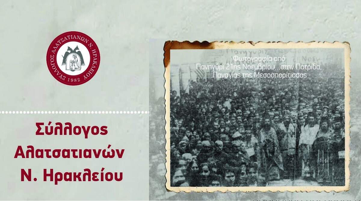 Το ΔΣ του συλλόγου Αλατσατιανών Νομού Ηρακλείου προσκαλεί και φέτος, την Δευτέρα 20 Νοεμβρίου και Τρίτη 21 Νοεμβρίου,