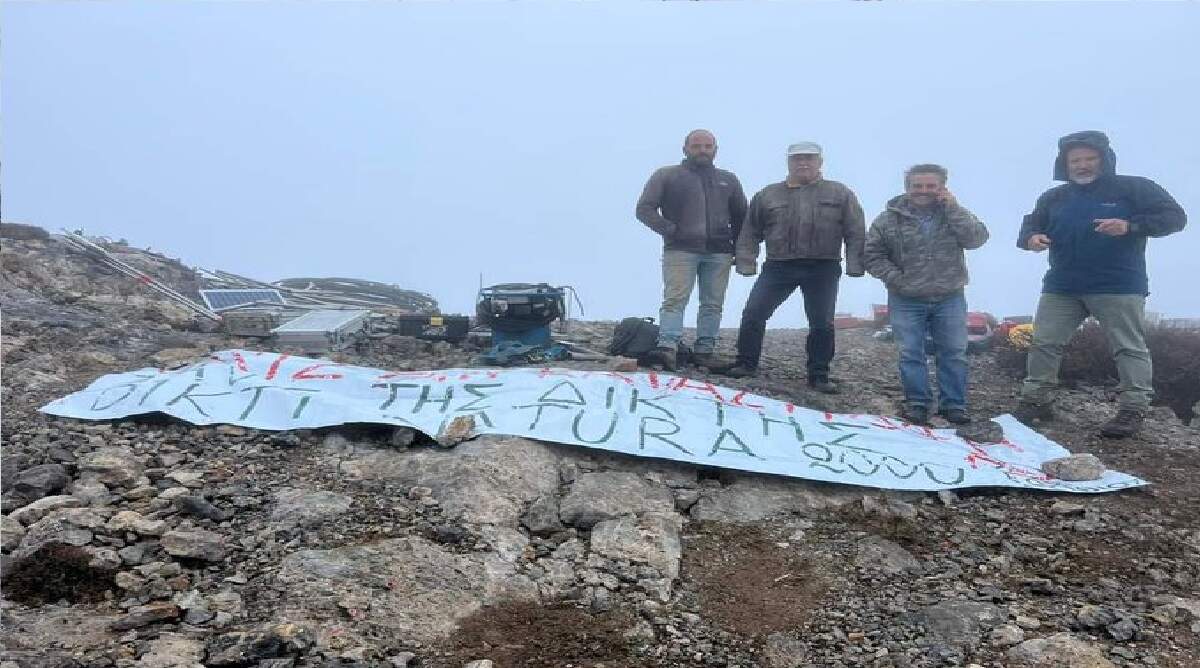 Στην κορυφή είχαν μεταφερθεί ο ιστός ,μηχανήματα,γεννήτριες και είχαν ξεκινήσει οι εργασίες στην κορυφογραμμή η οποία αποτελεί καταφύγιο της άγριας ορνιθοπανίδας της Δίκτης χαρακτηρισμένης Natura 2000