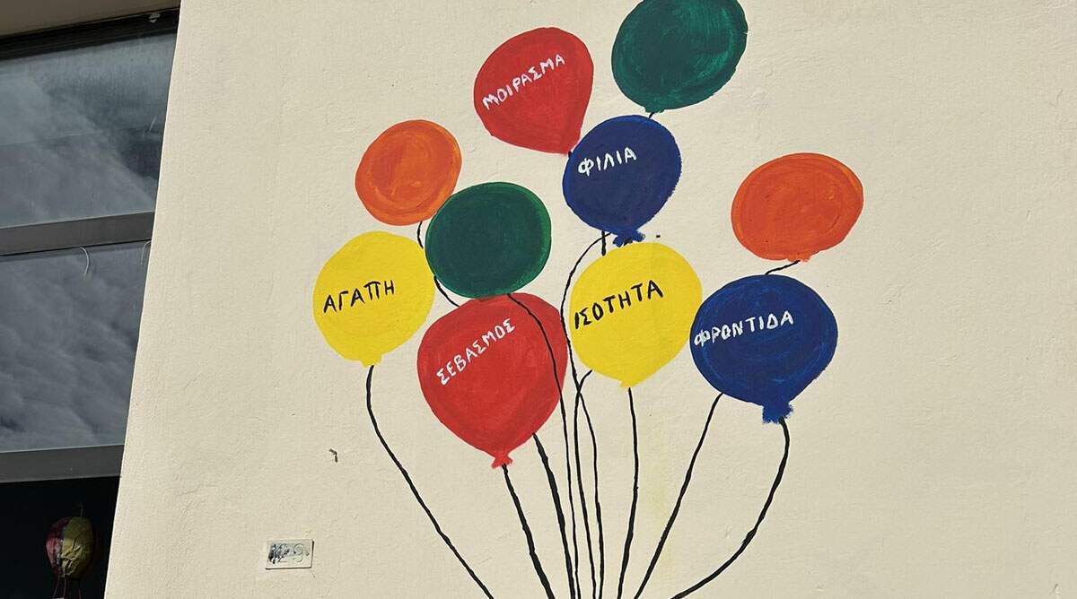 «Αγάπη, σεβασμός, ισότητα, φροντίδα, φιλία, μοίρασμα» έγραψαν τα παιδιά στα πολύχρωμα μπαλόνια που ζωγράφισαν στην είσοδο του σχολείου.