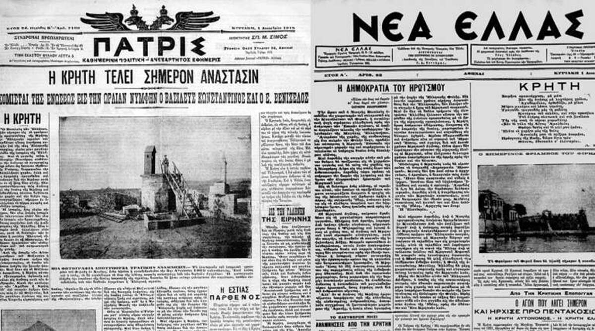 Το ιστορικό γεγονός της ένωσης της Κρήτης με την Ελλάδα, κατέγραψαν με θριαμβευτικό τρόπο οι εφημερίδες της εποχής. Παράλληλα, αναδημοσιεύουμε ρεπορτάζ της «Εστίας» από τις εκδηλώσεις για την ένωση της Κρήτης κι ένα κείμενο της Ρεθυμνιώτισσας πρωτοπόρου του γυναικείου κινήματος Καλλιρρόης Παρρέν που δημοσιεύτηκε στην «Εφημερίδα των Κυριών», που εξέδιδε η ίδια, στο τεύχος 15-30 Νοεμβρίου 1913 (φυσικά η εφημερίδα είχε εκδοθεί μετά την 1η Δεκεμβρίου, αλλά προφανώς η ημερομηνία που αναγραφόταν σχετιζόταν με τα γεγονότα του δευτέρου δεκαπενθημέρου του Νοεμβρίου που φιλοξενήθηκαν σ’ αυτήν).