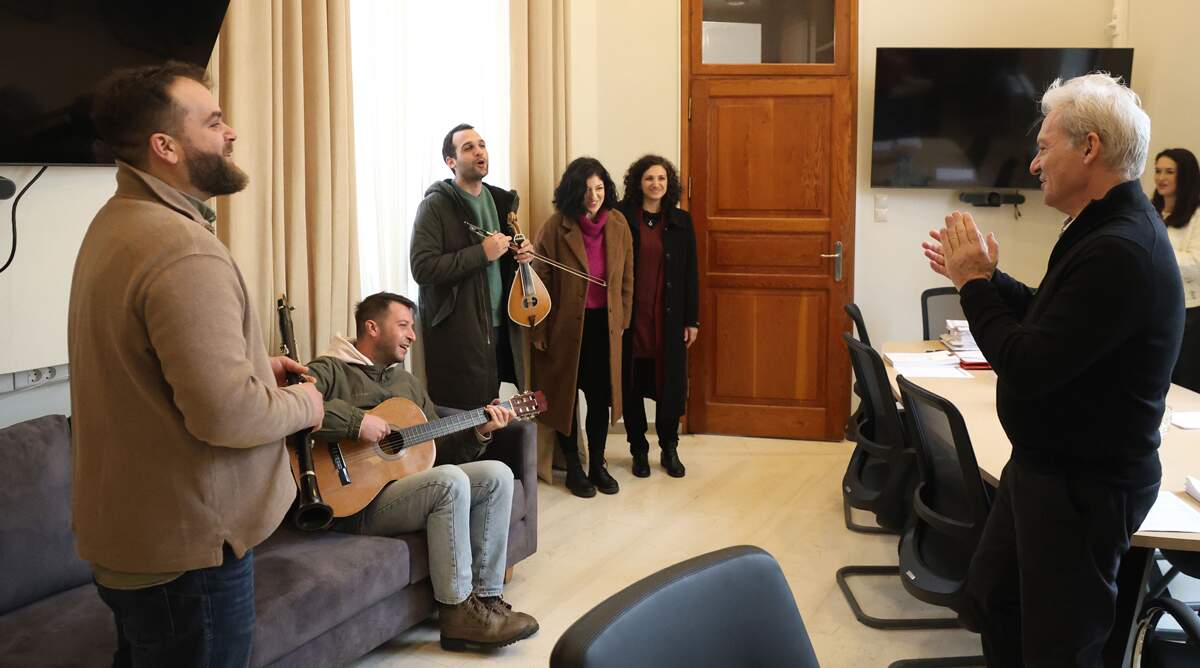 Κάλαντα και ευχές «πλημμύρισαν» από νωρίς το πρωί της Παρασκευής 22 Δεκεμβρίου την ενεργειακά αναβαθμισμένη αίθουσα του Δημοτικού Συμβουλίου στη Λότζια, όπου η Φιλαρμονική , ο στρατός ,σύλλογοι και σωματεία «έψαλαν» τα κάλαντα στον Δήμαρχο Ηρακλείου Βασίλη Λαμπρινό.