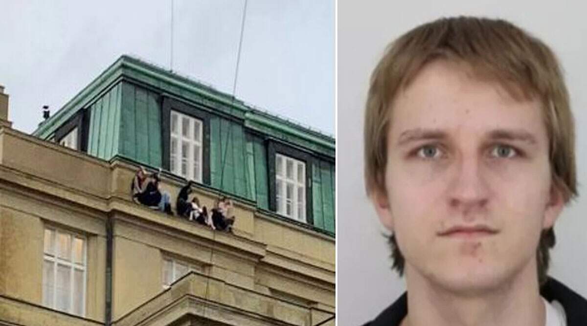Το βίντεο δείχνει τον 24χρονο φοιτητή του Πανεπιστημίου του Καρόλου να βρίσκεται στην οροφή, να φωνάζει και να ανοίγει πυρ κατά των ανθρώπων που έτρεχαν πανικόβλητοι να ξεφύγουν στη γέφυρα που περνάει μπροστά από το κτήριο.
