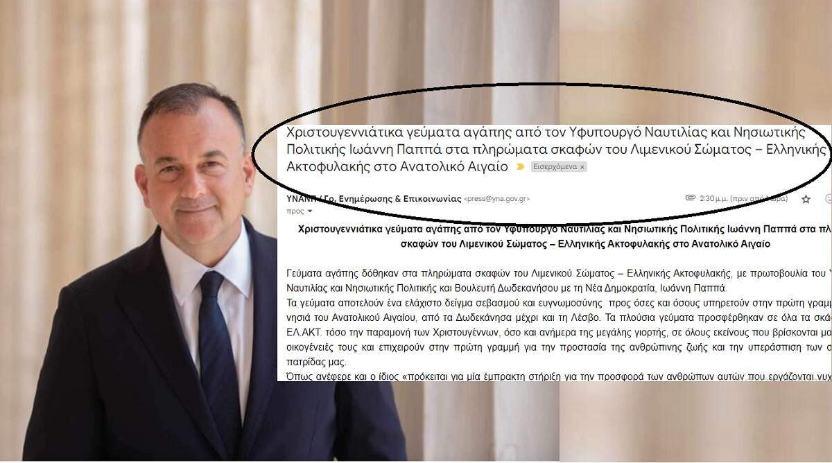Απάντηση για το θέμα που έφερε στο φως το Candiadoc σχετικά με τα χριστουγεννιάτικα γεύματα στο Λιμενικό και την Ακτοφυλακή, έδωσε ο Υφυπουργός Ναυτιλίας, Ιωάννης Παππάς.