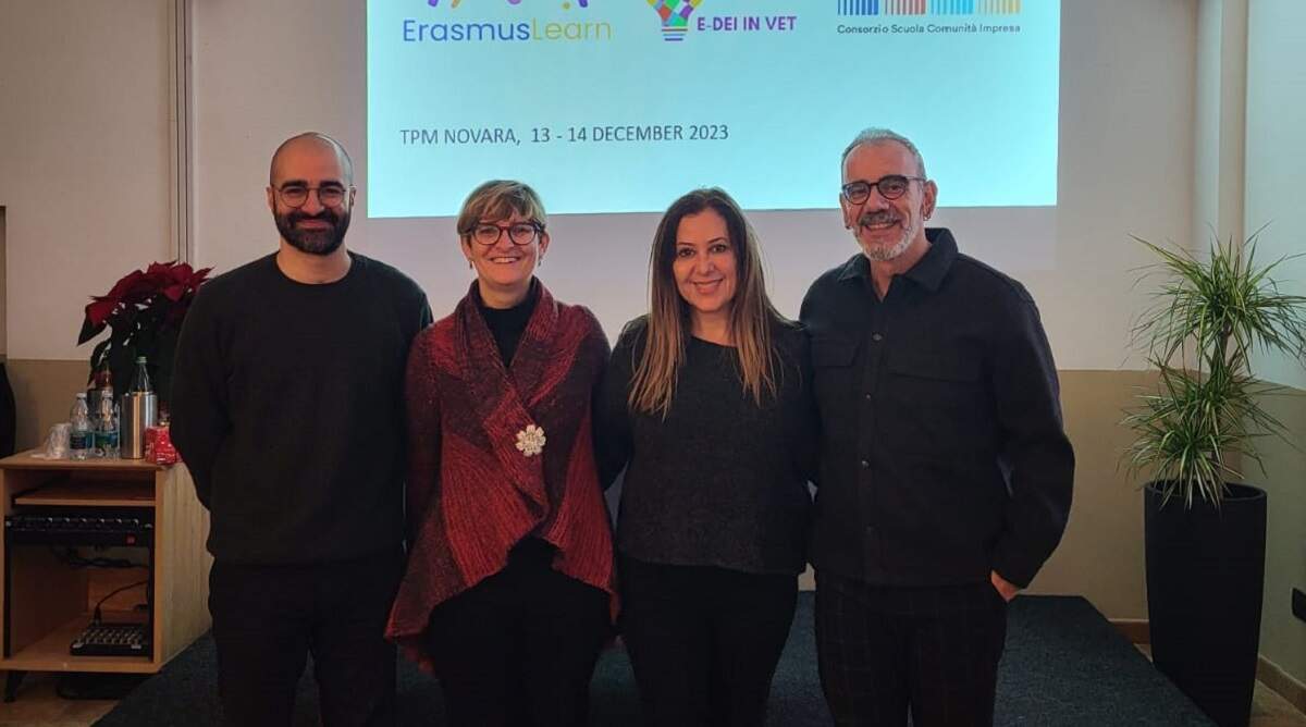 Το πρωτοποριακό πρόγραμμα «E-DEI in VET», μια πρωτοβουλία συνεργασίας μεταξύ CSCI  από ΙΤΑΛΙΑ και του ΚΔΒΜ ΟΛΟΚΛΗΡΩΣΗ ( ERASMUSLEARN) από Ελλάδα, ολοκλήρωσε  με επιτυχία μια κομβική συνάντηση στη Novara της Ιταλίας. Αυτή η σημαντική συνάντηση  σηματοδοτεί μια κρίσιμη μετάβαση στην επόμενη φάση του έργου – τη δημιουργία μιας σειράς  εκπαιδευτικών βίντεο με στόχο την προώθηση της διαφορετικότητας, της ισότητας και της  ένταξης (DEI) στην Επαγγελματική Εκπαίδευση και Κατάρτιση (VET) σε όλη την Ευρώπη.