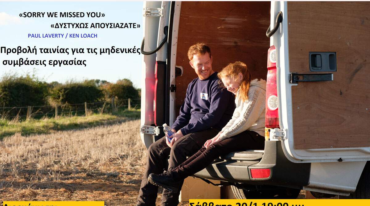το Σάββατο 20 Γενάρη 7:00 μμ στην αίθουσα του ΤΕΕ-ΤΑΚ (Γρεβενών και Πρεβελάκη) το σωματείο μας θα προχωρήσει σε προβολή της ταινίας «Δυστυχώς Απουσιάζετε – Sorry we missed you».