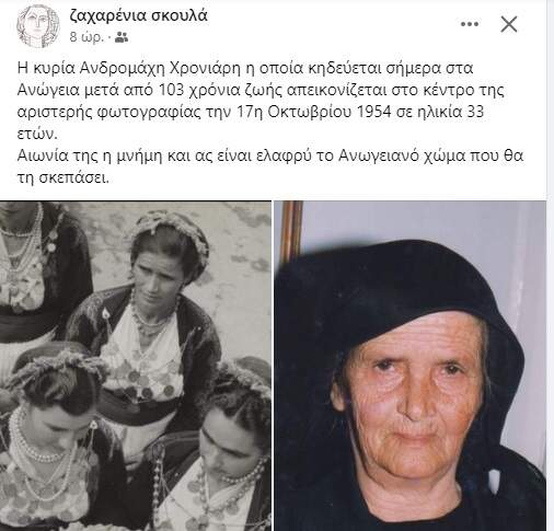 Η 103χρονη Ανδρομάχη Χρονιάρη κηδεύτηκε σήμερα στα Ανώγεια.