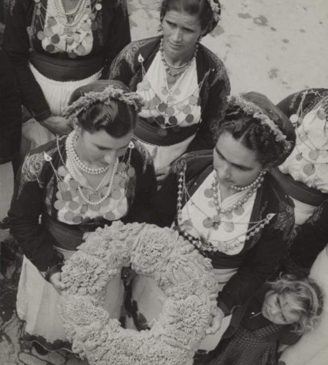 Στη φωτογραφία απεικονίζεται στο κέντρο της αριστερής φωτογραφίας την 17η Οκτωβρίου 1954 σε ηλικία 33 ετών.