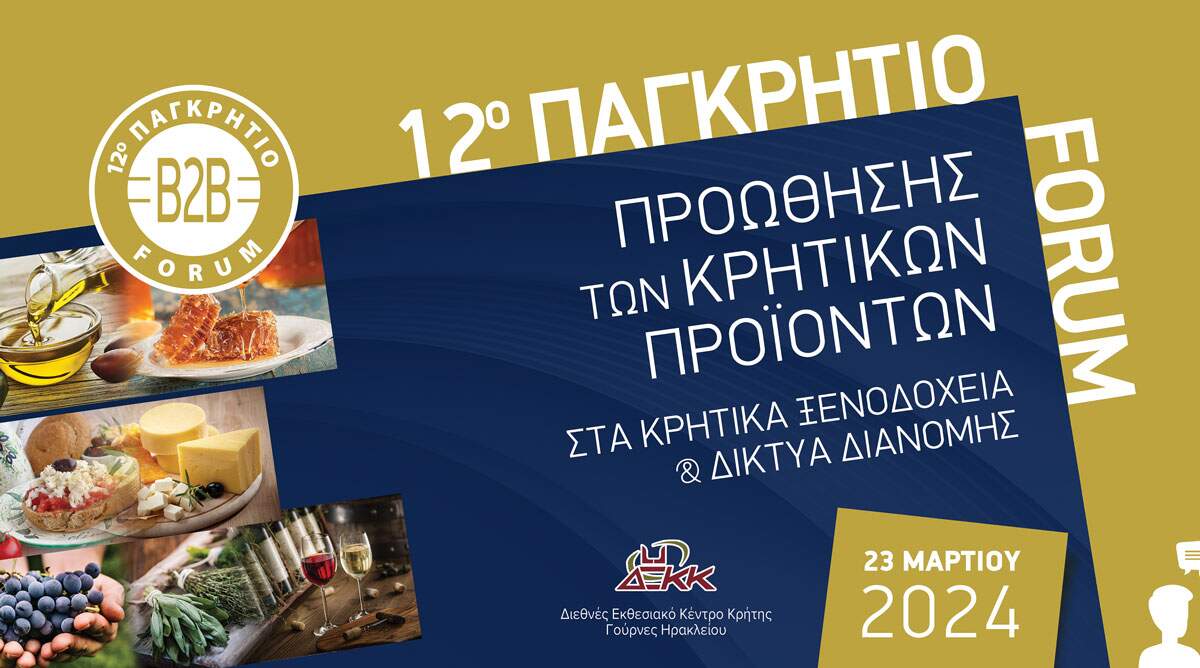 Το 12ο Παγκρήτιο Forum θα διεξαχθεί το Σάββατο 23 Μαρτίου 2024 στο ΔΙΕΘΝΕΣ ΕΚΘΕΣΙΑΚΟ ΚΕΝΤΡΟ ΚΡΗΤΗΣ (ΔΕΚΚ) στις Γούρνες Ηρακλείου με συμμετοχές απ’ όλη την Κρήτη. Θα περιλαμβάνει συναντήσεις για τη διάθεση φρέσκων και μεταποιημένων κρητικών αγροτικών προϊόντων στα κρητικά ξενοδοχεία και στην τοπική αγορά, μέσω των δικτύων διανομής – super market, καθώς και συναντήσεις με βιοτέχνες, μεταποιητές και άλλων προϊόντων που σχετίζονται με τον τουρισμό (πχ είδη συσκευασίας, καθαριστικά, εξοπλισμός κλπ), ώστε να δοθεί η ευκαιρία επέκτασης της συνεργασίας και με άλλους τομείς της τοπικής οικονομίας, πλην του αγροδιατροφικού.