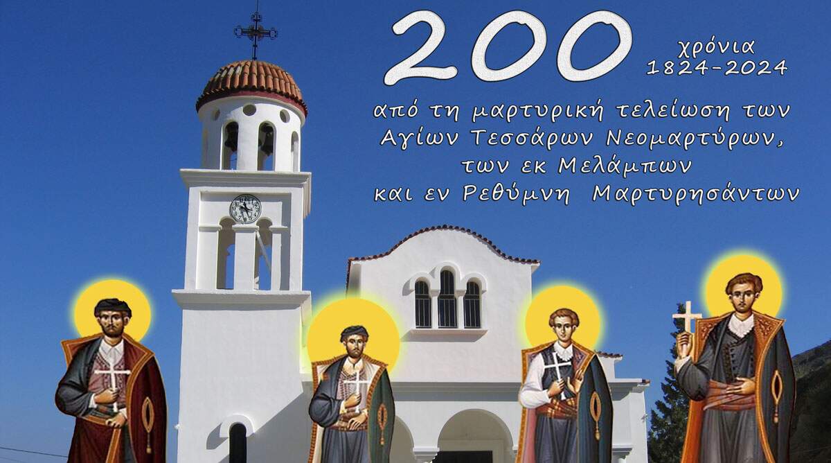 Ο Δήμος Αγίου Βασιλείου συμμετέχοντας στις επετειακές εκδηλώσεις των 200 ετών από τη μαρτυρική τελείωση των Αγίων Τεσσάρων Νεομαρτύρων, Γεωργίου, Αγγελή, Μανουήλ και Νικολάου, των εκ Μελάμπων και εν Ρεθύμνη μαρτυρησάντων, σε συνεργασία με τη Διεύθυνση Δευτεροβάθμιας Εκπαίδευσης Ρεθύμνου και την Ενορία Μελάμπων, διοργανώνει σχετική εκδήλωση – ημερίδα στο γενέθλιο τόπο τους.