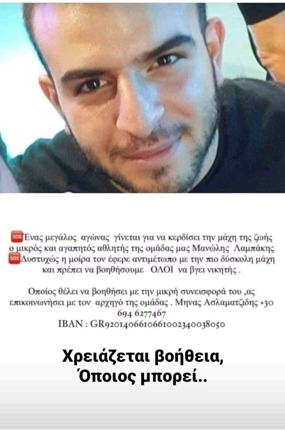 Τη μεγάλη μάχη της ζωής του δίνει ο Ηρακλειώτης ποδοσφαιριστής του “Ποσειδωνα” Ηρακλείου Μανώλης Λαμπάκης.