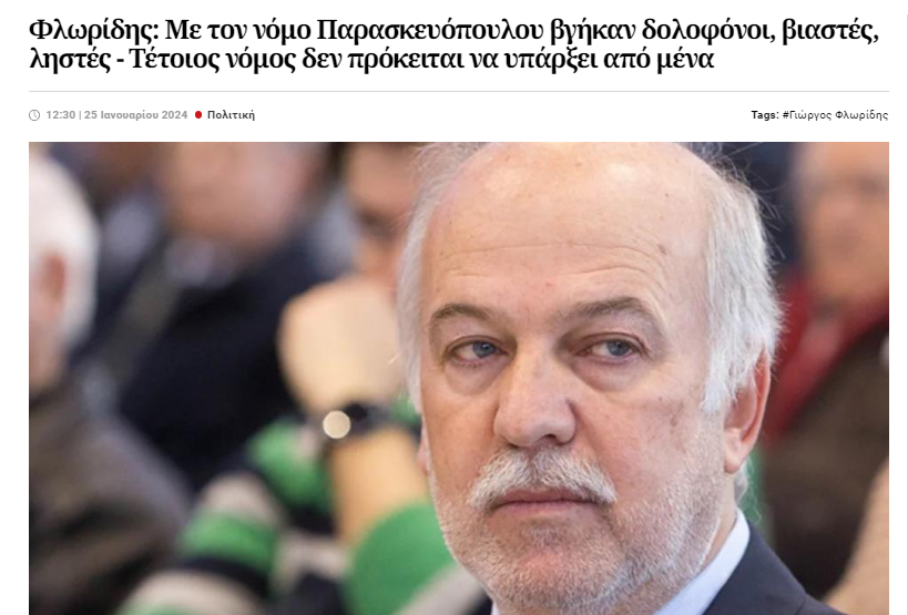 Θλιβερός Φλωρίδης, στοχοποιεί τον Ν. Παρασκευόπουλο – “Η δήλωση είναι επικίνδυνη για τη δικαιοσύνη και τη δημόσια τάξη”, απαντά ο πρώην υπουργός