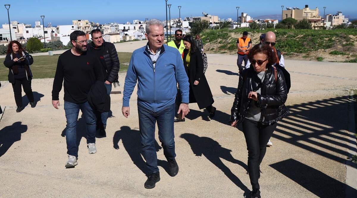 Τον Δήμαρχο συνόδευαν επίσης ο επιβλέπων μηχανικός του έργου Γιώργος Ταβερναράκης, τα υπηρεσιακά στελέχη της Τεχνικής Υπηρεσίας του Δήμου Ευαγγελία Παπαδάκη υπεύθυνη του τμήματος της Παλιάς Πόλης, Κάλλια Νικολιδάκη αρχαιολόγος, και Πολύμνια Μαρκογιαννάκη αρχιτέκτονας καθώς και οι γεωπόνοι του Τμήματος Πρασίνου Ελευθερία Κασσαπάκη και Μανόλης Παρασκευάς.