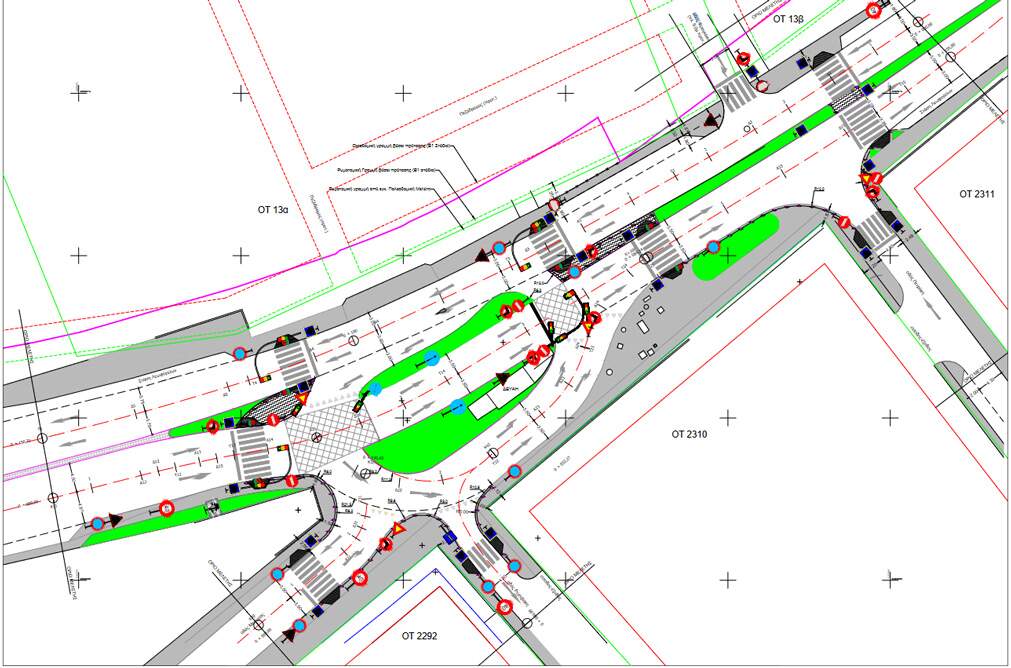 Ειδικότερα, στην περίπτωση του κόμβου της Λ. 62 Μαρτύρων προβλέπεται μεταξύ άλλων η ανανακατασκευή του υφιστάμενου κυκλικού κόμβου σε νέα θέση, μετατοπισμένη δυτικά, δημιουργία διαβάσεων, επέκταση πεζοδρομίων, προτεραιότητα στα οχήματα που κινούνται εντός της κυκλικής πορείας και η ρύθμιση της κυκλοφορίας με φωτεινούς σηματοδότες.