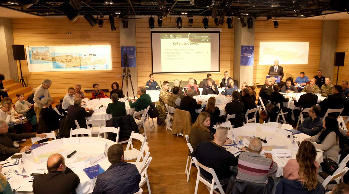 Ο Δήμος Ηρακλείου συμμετείχε στην άσκηση επί χάρτου «Μίνωας 2024» που διοργανώθηκε από το Υπουργείο Κλιματικής Κρίσης & Πολιτικής Προστασίας και τον Οργανισμό Αντισεισμικού Σχεδιασμού & Προστασίας στο Πολιτιστικό Συνεδριακό Κέντρο Ηρακλείου.