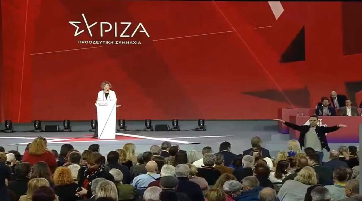 Με την ανακοίνωσή της αρχικά ακούγονται χειροκροτήματα. Χειροκροτεί πρώτος όρθιος ο Στέφανος Κασσελάκης. Αλλά ακολουθούν έντονες αποδοκιμασίες και διαμαρτυρίες. Η κ. Γεροβασίλη χαμογελά αμήχανα. Και τότε ο κ. Κασσελάκης σταματά να χειροκροτεί και γυρίζει προς τους συνέδρους ζητώντας με τα χέρια του να σταματήσουν τα γιουχαΐσματα.