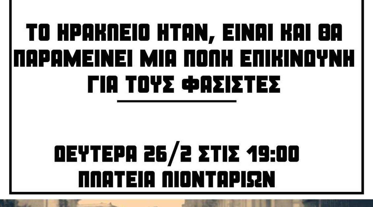 Όσοι δίνουν πολιτικό χώρο στα ναζιστικά απόβλητα να είναι σίγουροι ότι θα λογοδοτήσουν στο αντιφασιστικό κίνημα του Ηρακλείου. To Ηράκλειο ήταν, είναι και θα παραμείνει μια πόλη επικίνδυνη για τους φασίστες.