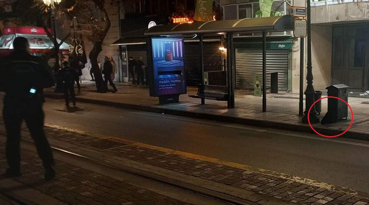 Το μαύρο σακίδιο εντοπίστηκε σε στάση λεωφορείου στη συμβολή της Όθωνος με την Αμαλίας, και αμέσως σήμανε συναγερμός, σύμφωνα με τις πληροφορίες του documentonews.gr.