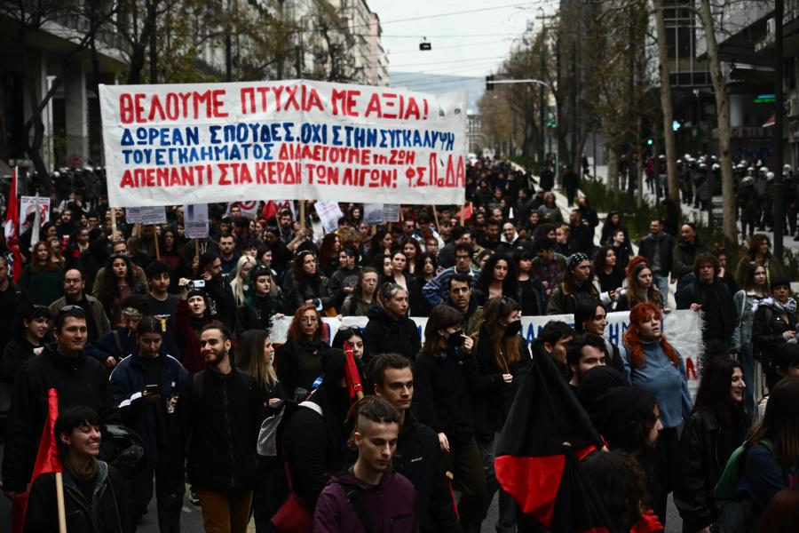 Οι φοιτητές διαβαίνουν την όγδοη εβδομάδα κινητοποιήσεων με καταλήψεις και διαδηλώσεις εντείνοντας τις διαμαρτυρίες τους. Στο συλλαλητήριο συμμετέχουν μαθητές, φορείς και συλλογικότητες, εκφράζοντας τη δική τους αντίθεση, εγκαλώντας την κυβέρνηση πως σκοπεύει να μετατρέψει την τριτοβάθμια εκπαίδευση σε επιχειρηματικό πεδίο, στοχεύοντας στην εξυπηρέτηση ιδιωτικών συμφερόντων.