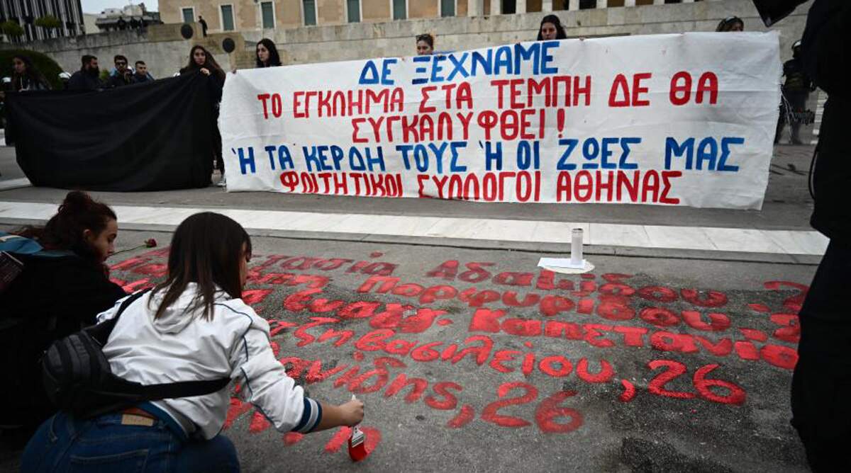 Φοιτητές ξαναγράφουν τα ονόματα των 57 νεκρών στο Σύνταγμα #Τέμπη