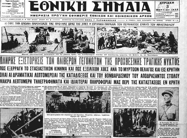 Συμπληρώνονται 89 χρόνια από το βενιζελικό κίνημα της 1ης Μαρτίου 1935. Όταν, δηλαδή, οι οργανώσεις της βενιζελικής παράταξης, κυρίως στο στράτευμα, αλλά και στον ευρύτερο κοινωνικό χώρο προχώρησαν σε κίνημα με στόχο την αποτροπή της παλινόρθωσης της βασιλευόμενης δημοκρατίας, αλλά και την αποκατάσταση των δημοκρατικών αξιωματικών που είχαν εκδιωχθεί από το στράτευμα. Στην ουσία, όμως, πίσω από την κίνηση αυτή υπήρχε ο στόχος της επιστροφής των βενιζελικών στην εξουσία. Το κίνημα όμως απέτυχε με συνέπεια να οδηγηθούν στις φυλακές εκατοντάδες στελέχη των Φιλελευθέρων, να καθαιρεθούν πολλοί ανώτατοι αξιωματικοί κι ο ίδιος ο Ελευθέριος Βενιζέλος να οδηγηθεί αυτοεξόριστος στο Παρίσι, όπου και πέθανε λίγο αργότερα.