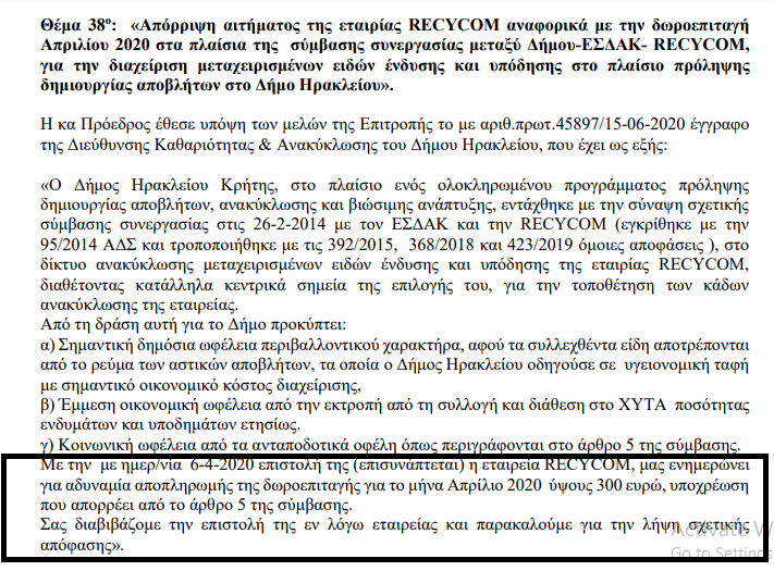 Αφού ο δήμος Ηρακλείου ουδέποτε απάντησε στα σχόλια για την οικονομική του σχέση με την ιδιωτική εταιρεία ανακύκλωσης Recycom, εκείνη την οποία εδώ και 10 χρόνια τροφοδοτούν,οι δημότες με προτροπή του δήμου μέσα από 180, σήμερα, σημεία συγκέντρωσης πρώτων υλών (παλαιών αλλά όχι άχρηστων ειδών ένδυσης και υπόδησης), το Candiadoc έψαξε και βρήκε.