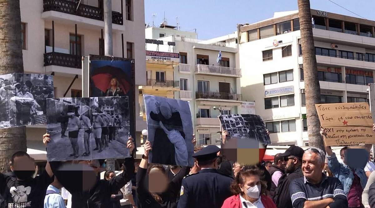 Παρεμβάσεις σε Ηράκλειο και Χανιά πραγματοποίησε η Συνέλευση Αλληλεγγύης στον Παλαιστινιακό Λαό, ανήμερα της 25ης Μαρτίου.