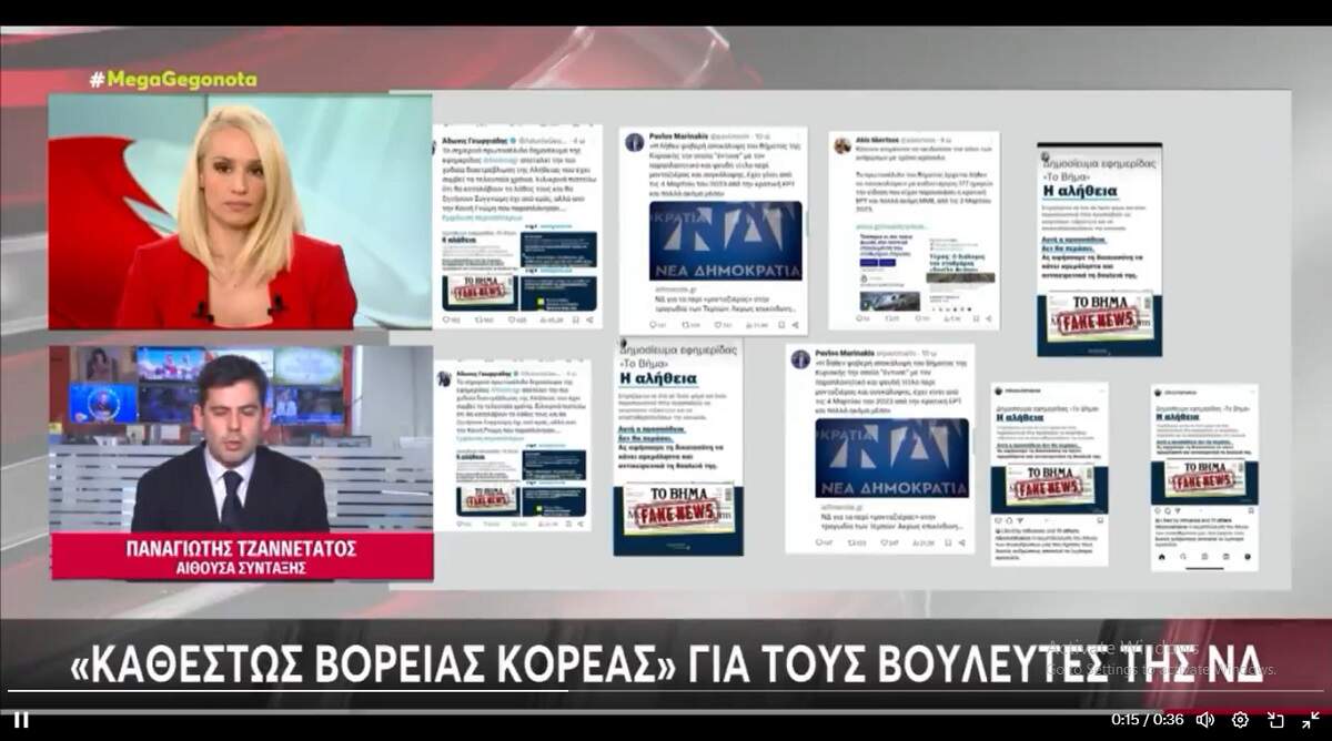 . Από την πλευρά του το Mega αποκάλεσε ”καθεστώς Βόρειας Κορέας” τις αναρτήσεις βουλευτών και υπουργών της ΝΔ κατά του Βήματος. Και αναφέρεται σε “αβάστακτη ελαφρότητα” με την οποία τα κυβερνητικά στελέχη μιλούν για fake news.