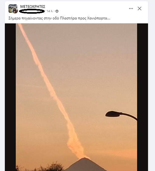 Το πιθανότερο είναι να πρόκειται για τη “φλόγα” από τις τουρμπίνες αεροπλάνου που διέσχιζε τον κρητικό ουρανό.
