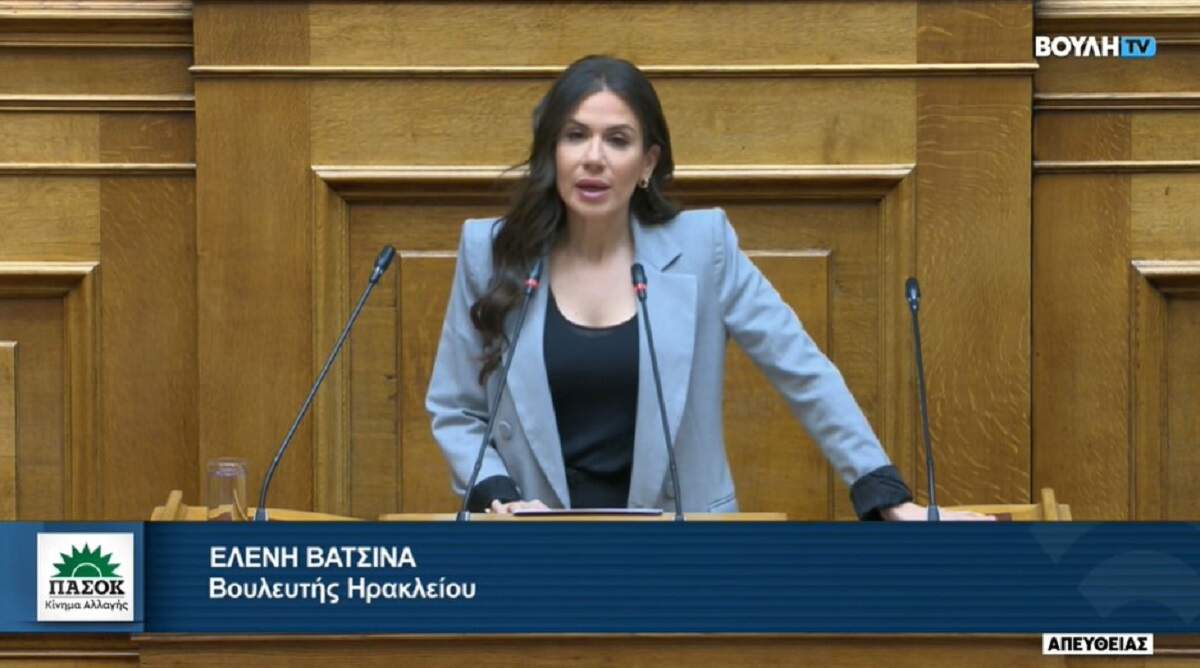 Κριτική στην Οικονομική Πολιτική της κυβέρνησης της ΝΔ άσκησε από το βήμα της Βουλής, η βουλευτής Ηρακλείου ΠΑΣΟΚ, Ελένη Βατσινά