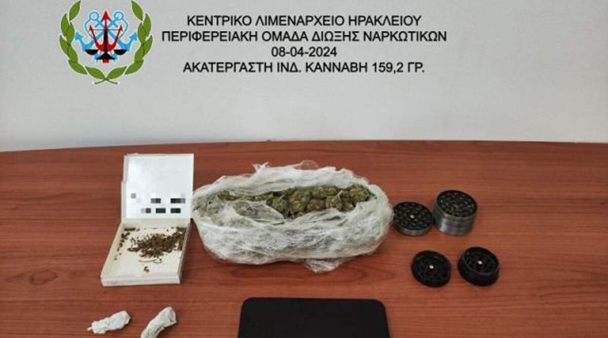 Όπως αναφέρεται στη σχετική ανακοίνωση, κατά τον κατάπλου Ε/Γ-Ο/Γ πλοίου προερχόμενο από το λιμάνι του Πειραιά, διενεργήθηκε έλεγχος στον νεαρό που μόλις είχε αποβιβασθεί, με τη συνδρομή του αστυνομικού σκύλου ανίχνευσης ουσιών K9 “ΜΑΣΚ” και βρέθηκαν στην κατοχή του, μία νάιλον συσκευασία που περιείχε ακατέργαστη ινδική κάνναβη, μικτού βάρους 158,6 γραμμαρίων καθώς και ένας μεταλλικός θρυμματιστής, με υπολείμματα.