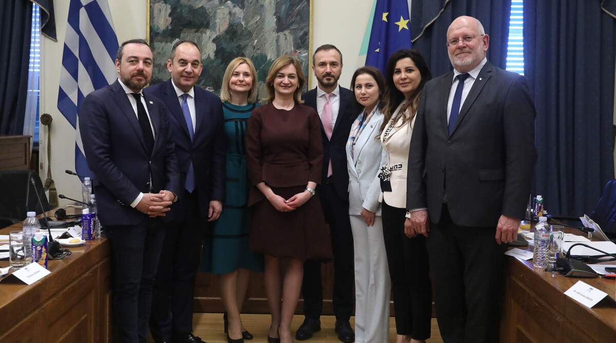 Αντιπροσωπεία της Επιτροπής Ευρωπαϊκών Υποθέσεων της Βουλής των Ελλήνων αποτελούμενη από τον Πρόεδρό της και Α’ Αντιπρόεδρο του Κοινοβουλίου κ. Ιωάννη Πλακιωτάκη και τους κ.κ. Κωνσταντίνο Μπάρκα και Φραγκίσκο Παρασύρη, συναντήθηκε σήμερα στο Μέγαρο της Βουλής με αντιπροσωπείες των Επιτροπών Ευρωπαϊκών Υποθέσεων της Βουλής των Αντιπροσώπων της Ρουμανίας και Εξωτερικής Πολιτικής και Ευρωπαϊκής Ολοκλήρωσης του Κοινοβουλίου της Μολδαβίας.