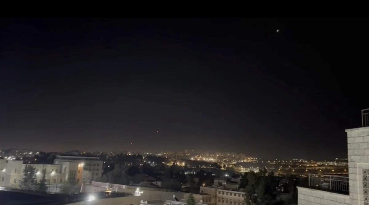 Explosions light up the sky above Jerusalem as Iran launches drones and fires missiles at Israel. https://t.co/w3haJAdW6o pic.twitter.com/f96pDsnxPK