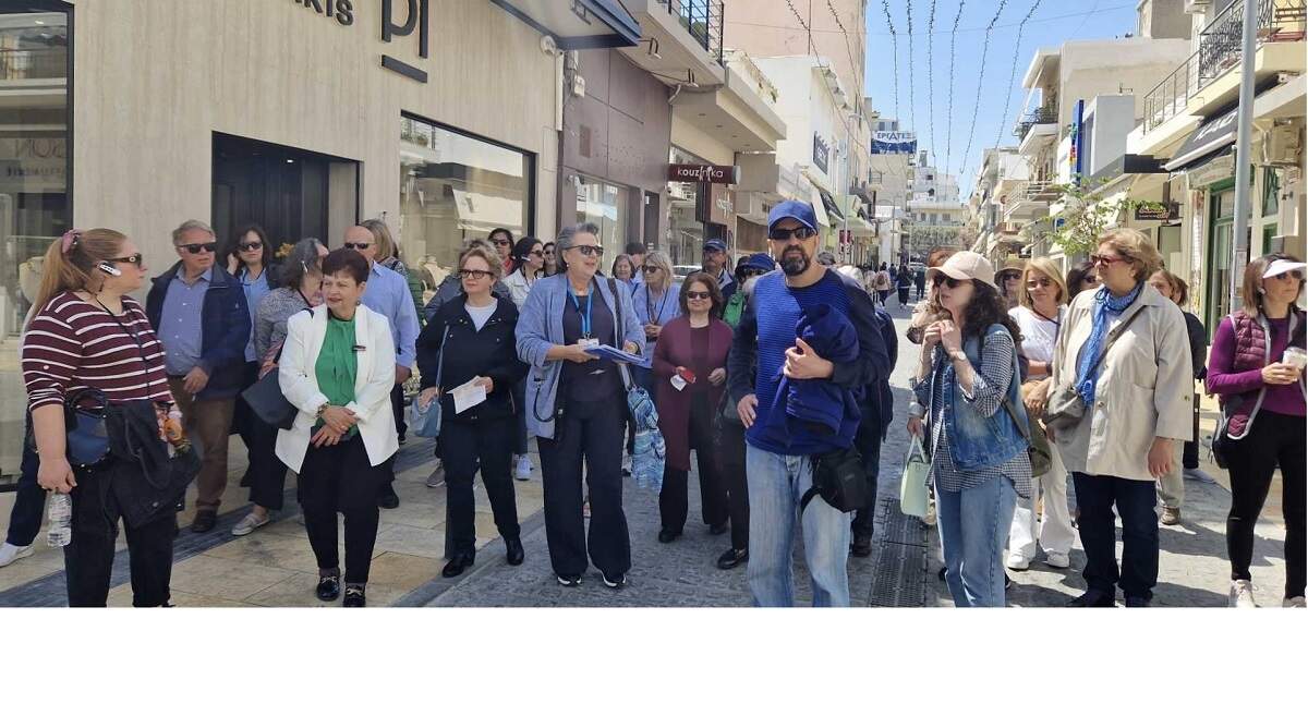 Η ξεναγός Αθηνά Σφακάκη ταξίδεψε στα μονοπάτια της ιστορίας και του πολιτισμού τα περισσότερα από 60 άτομα όλων των ηλικιών, περιδιαβαίνοντας το κέντρο της πόλης ξεκινώντας από τη Στοά Μακάσι. Λάκκος, Άγιος Ματθαίος, παλιός Άγιος Μηνάς, σταυρός της πόλης, Κρήνη Μοροζίνι, Βασιλική του Αγίου Μάρκου, Λότζια και Άγιος Τίτος ήταν οι σταθμοί της δεύτερης επιτυχημένης ξενάγησης.