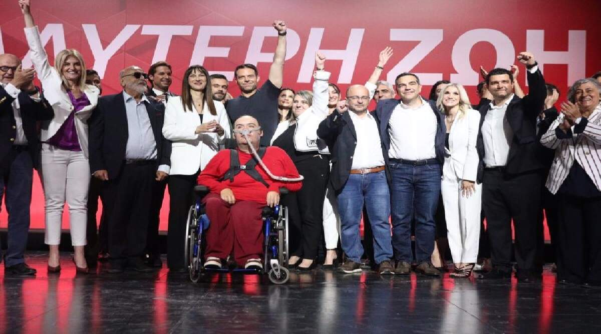Όλοι όρθιοι χειροκροτούσαν τον Αλέξη Τσίπρα καθώς ο πρώην πρωθυπουργός ανέβηκε στο βήμα μετά από κάλεσμα του Στέφανου Κασσελάκη κατά την παρουσίαση του ευρωψηφοδελτίου του ΣΥΡΙΖΑ – ΠΣ.