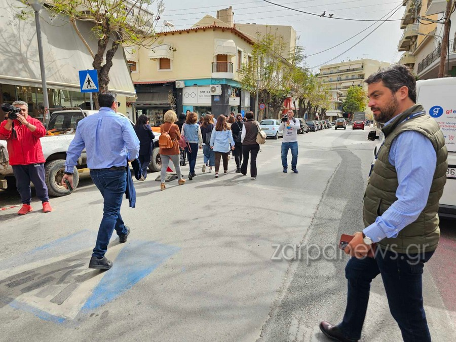 Έξω από τις αίθουσες, στις αυλές σχολείων, βγήκαν επίσης μαθητές και εκπαιδευτικοί, όπως συνέβη στο 2ο δημοτικό, έναντι του δημαρχείου.
