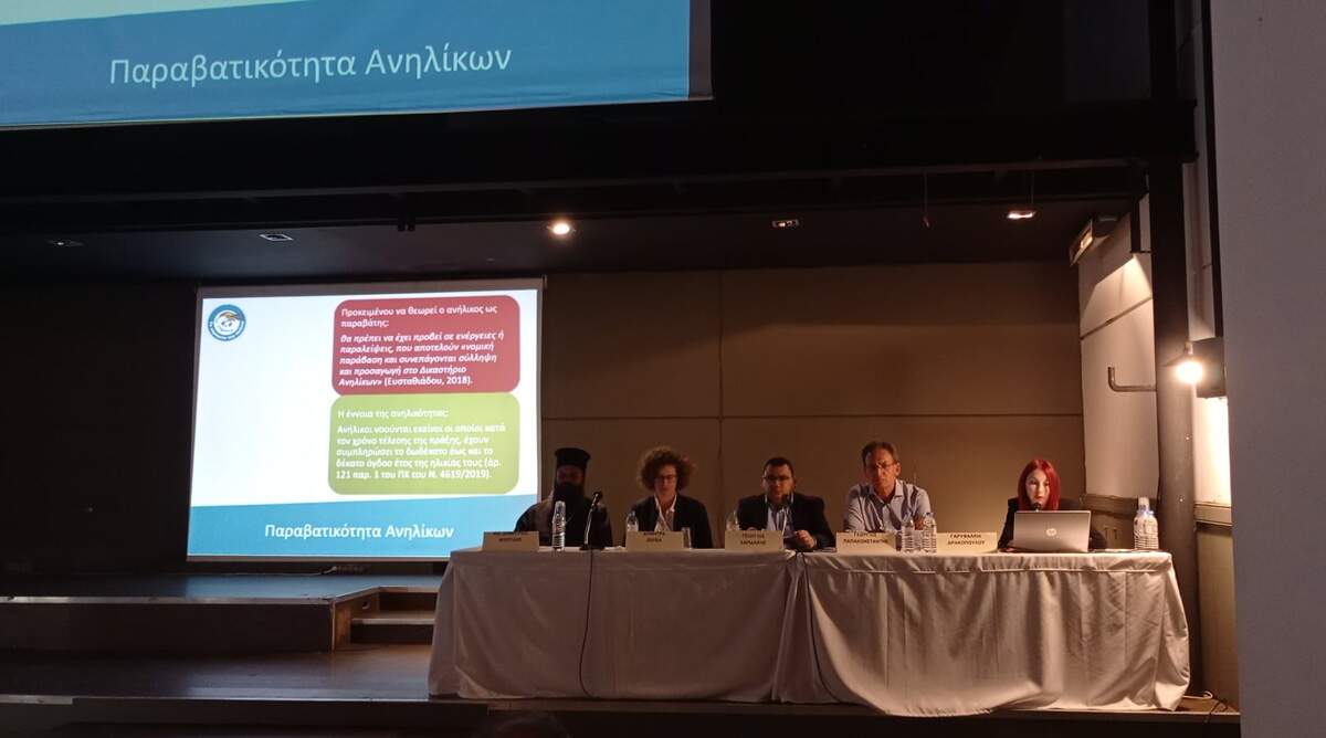 - Ο κ. Γεώργιος Παπακωνσταντής, Καθηγητής Εγκληματολογίας και Ταξίαρχος ε.α. της ΕΛ.ΑΣ ανέπτυξε θεματικές όπως: Γιατί Παραβατικότητα και όχι Εγκληματικότητα στα ανήλικα πρόσωπα και ποια η σχέση με την παραβατικότητα-Εγκληματικότητα των ενηλίκων. Ποιες οι πολυπαραγοντικές αιτίες «έξαρσης» του Φαινομένου και σε ποια σημεία θα ήτο δυνατό να αναγάγουμε τις προκλήσεις της πρόληψης και της αντιμετώπισης και ακόμα, σχολίασε το γεγονός αν πραγματικά είναι αυξημένη η παραβατικότητα ανηλίκων ή έχει αυξηθεί η θεατότητά της σε συνδυασμό με την μεγαλύτερη κοινωνική ευαισθητοποίηση.
