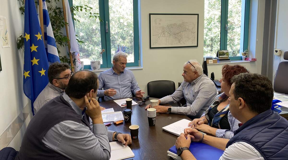 Σύσκεψη εργασίας συγκάλεσε το πρωί της Παρασκευής 26/4 στη ΔΕΥΑΗ ο Δήμαρχος Ηρακλείου Αλέξης Καλοκαιρινός, ο οποίος συζήτησε με τον Πρόεδρο της δημοτικής επιχείρησης Γιώργο Βουρεξάκη και υπηρεσιακά στελέχη, την πορεία των έργων που βρίσκονται σε εξέλιξη και όσων προγραμματίζονται για το επόμενο διάστημα.