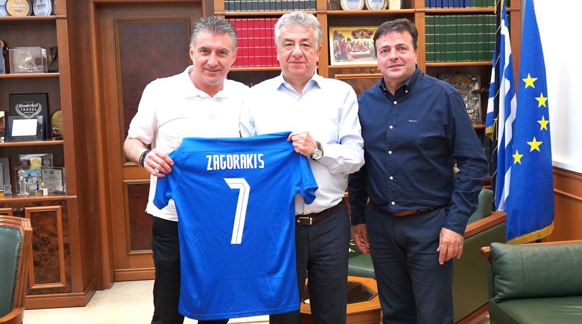 Στο τέλος της συνάντησης ο σπουδαίος ποδοσφαιριστής χάρισε στον Περιφερειάρχη την αθλητική φανέλα με το ν. 7 που φορούσε όταν έπαιζε στην εθνική ομάδα ποδοσφαίρου.