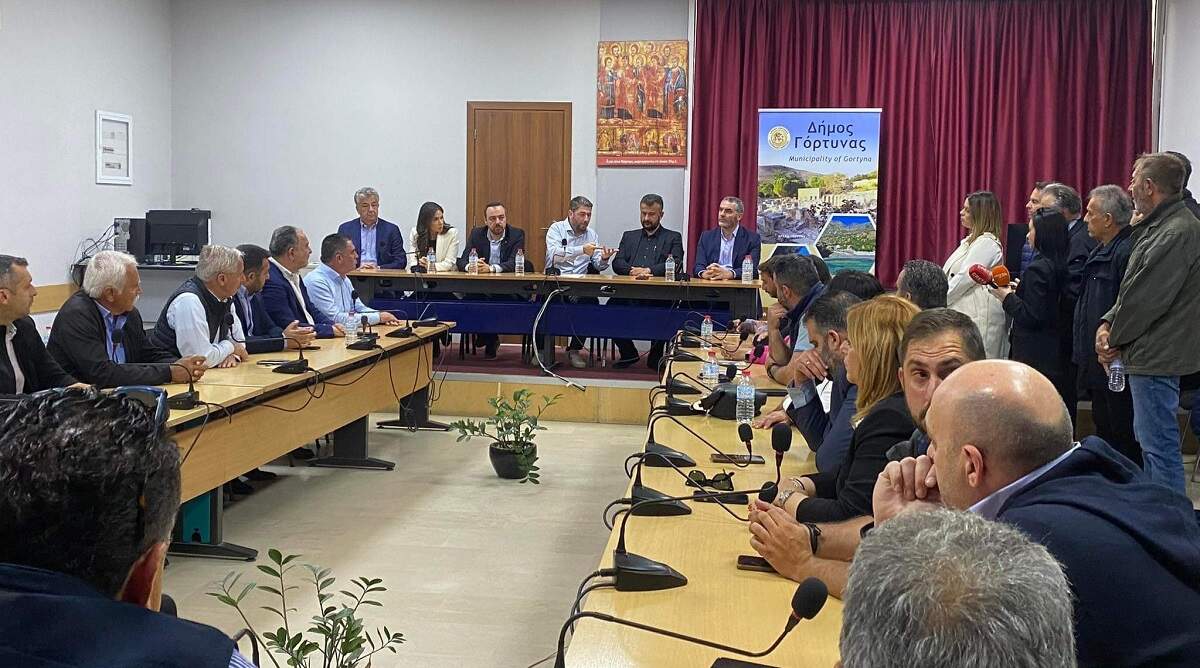 Τον Δήμο Γόρτυνας επισκέφθηκε ο Πρόεδρος του ΠΑΣΟΚ – ΚΙΝΑΛ, Νίκος Ανδρουλάκης, συνοδευόμενος από τους βουλευτές Ηρακλείου, Ελένη Βατσινά, Φραγκίσκο Παρασύρη και Ρεθύμνου, Μανώλη Χνάρη και από υποψηφίους ευρωβουλευτές του κόμματός του. Τον Πρόεδρο του ΠΑΣΟΚ – ΚΙΝΑΛ, Νίκο Ανδρουλάκη, υποδέχθηκε, στο Δημαρχείο Γόρτυνας, στους Αγίους Δέκα, ο Δήμαρχος Μιχάλης Κοκολάκης. Παρόντες ήταν, επίσης, ο Περιφερειάρχης Κρήτης, Σταύρος Αρναουτάκης, στελέχη της Περιφέρειας και της δημοτικής αρχής, εκπρόσωποι όμορων Δήμων και φορέων της ευρύτερης περιοχής.