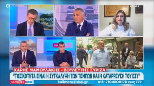 Συνέντευξη του Χάρη Μαμουλάκη στην τηλεόραση του ΣΚΑΙ Για όλα τα θέματα της τρέχουσας επικαιρότητας μίλησε ο Τομεάρχης Υποδομών & Μεταφορών Κ.Ο. ΣΥΡΙΖΑ Προοδευτική Συμμαχία, Βουλευτής Ηρακλείου Χάρης Μαμουλάκης, το Σάββατο 12/5 στην τηλεόραση του ΣΚΑΙ και την εκπομπή «Καλημέρα» με τον Γιάννη Ντσούνο. Ο Χάρης Μαμουλάκης επεσήμανε ότι η ΝΔ επιχειρεί να πολώσει το κλίμα ενόψει των Ευρωεκλογών, ενισχύοντας την τοξικότητα, φέρνοντας ως…