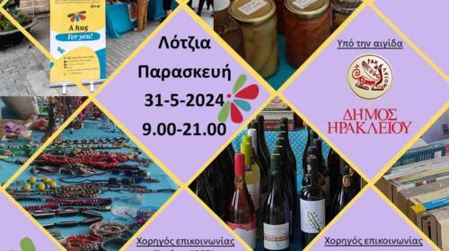 Όπως κάθε χρόνο, ο Σύλλογος στήριξης ασθενών με νεοπλασματική νόσο «Ευ Ζω με τον Καρκίνο», θα πραγματοποιήσει το ετήσιο παζάρι του υπό την αιγίδα του Δήμου Ηρακλείου, την Παρασκευή 31 Μαΐου από τις 9 το πρωί έως τις 9 το βράδυ στο αίθριο της Λότζια, στο Δημαρχείο Ηρακλείου. Το παζάρι γίνεται για την ενίσχυση των σκοπών του Συλλόγου Ευ Ζω…