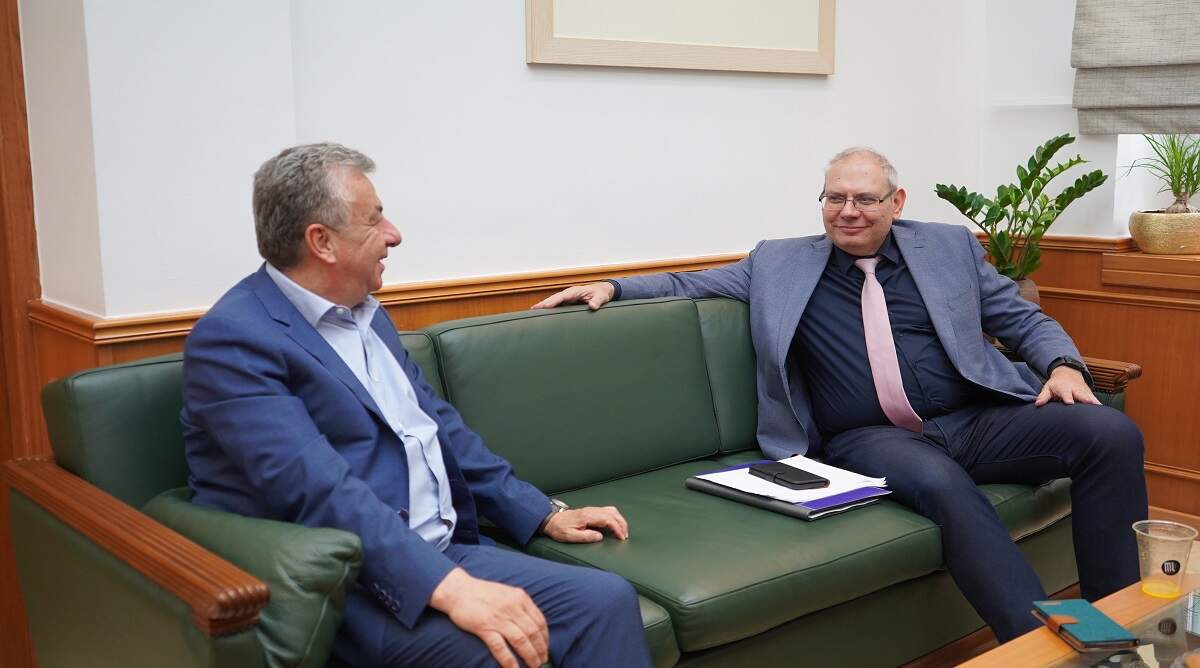 Αρχικά τον Δήμαρχο Ηρακλείου επισκέφτηκε ο Γενικός Γραμματέας του Υπουργείου Εσωτερικών Αθανάσιος Μπαλέρμπας, για να συζητήσουν θέματα αρμοδιοτήτων του, όπως είναι η πορεία διαφόρων έργων, αλλά και ζητήματα που απασχολούν τον Δήμο Ηρακλείου. Στην πορεία στη συνάντηση συμμετείχε και Πρόεδρος του Ταμείου Παρακαταθηκών & Δανείων Δημήτρης Σταμάτης, με την ατζέντα να εμπλουτίζεται και με θέματα που αφορούν την συνεργασία του ΤΠ&Δ με τον Δήμο Ηρακλείου.