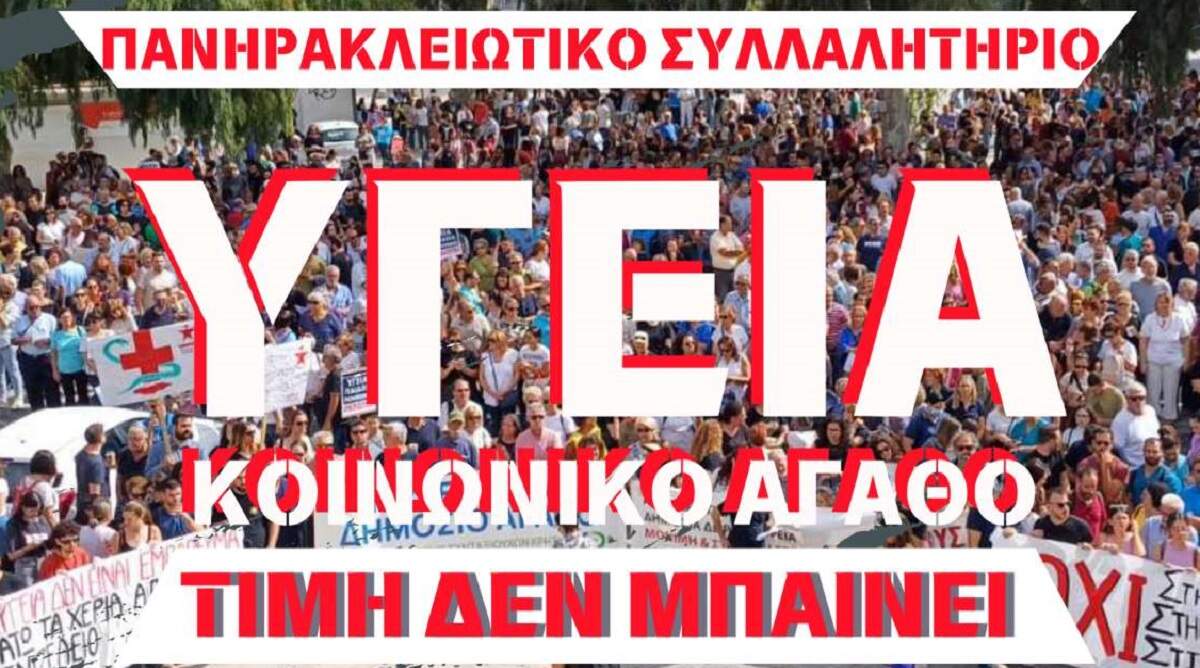 Τη μεγάλη κινητοποίηση οργανώνουν το Σωματείο Εργαζομένων του ΠΑΓΝΗ, το Σωματείο Εργαζομένων του Βενιζελείου και στηρίζεται από το ΕΚΗ και από την Ένωση Νοσοκομειακών Γιατρών,από Εργατικά Σωματεία και Μαζικούς Φορείς του Ηρακλείου