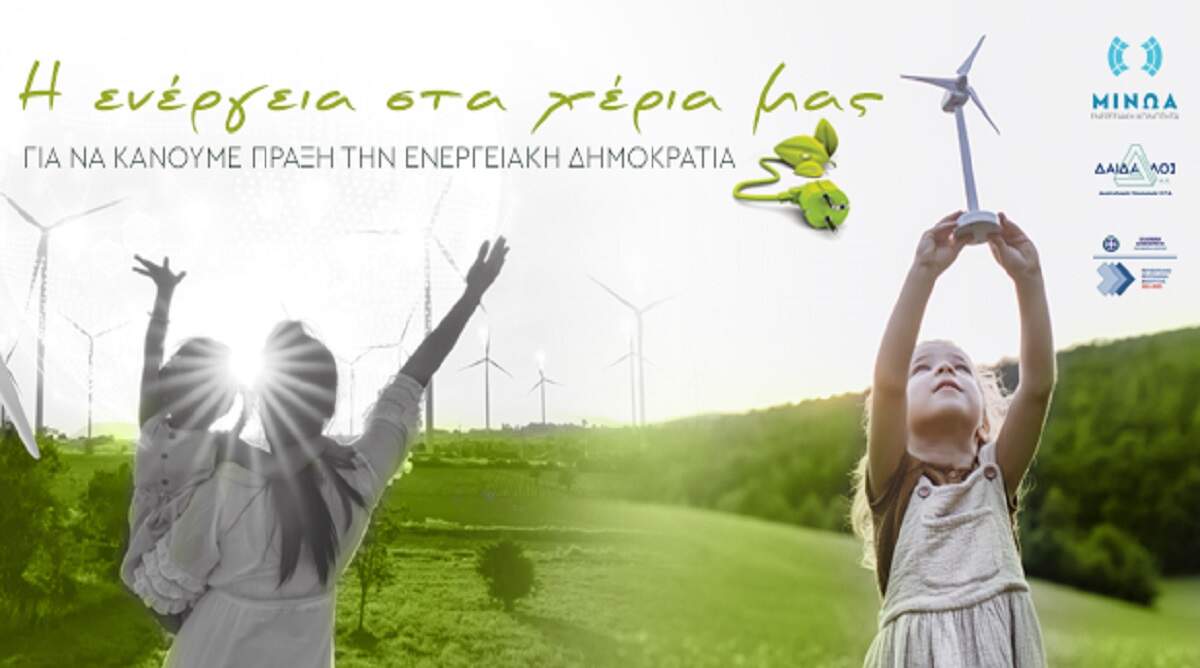 Ενημερωτικές εκδηλώσεις για τις Ενεργειακές Κοινότητες θα πραγματοποιηθούν την Τετάρτη 22 Μαΐου στις 6.00 το απόγευμα στο Συνεδριακό Κέντρο Αρκαλοχωρίου, την Πέμπτη 23 Μαΐου στις 5.00 το απόγευμα στο Δημαρχείο του Δήμου Οροπεδίου Λασιθίου, στο Τζερμιάδο και την Παρασκευή 24 Μαΐου στις 6.00 το απόγευμα στην Αίθουσα Πολιτιστικού Συλλόγου Άρβης.